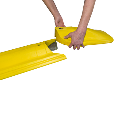 The chamfered end piece B comes with moulded-in receptacle for steel hook and safety screw. Like the Guide curb it's made of recycling material and is equipped with an anti-skid-system.