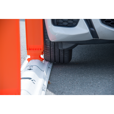 The individual elements of the Guide curb, available in yellow or white, are interconnected by an extremely sturdy metal hook. The anti-skid system (ARS) on the underside of the Guide curb provides excellent surface adhesion on the road.